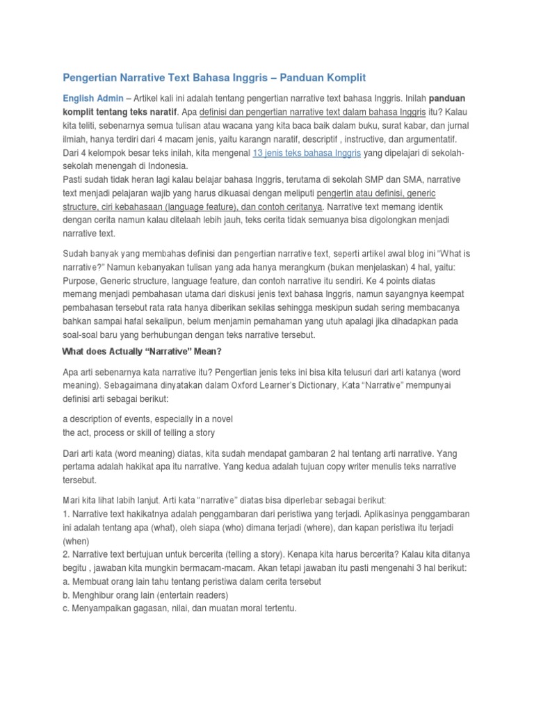 Contoh Narrative Text Bahasa Inggris Lengkap Pdf Pinokio