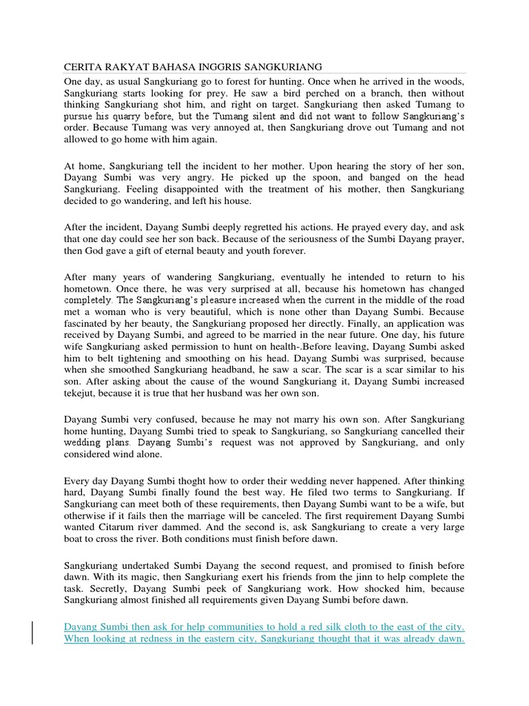 Teks Cerita Sangkuriang Dalam Bahasa Inggris Dan Artinya Pdf